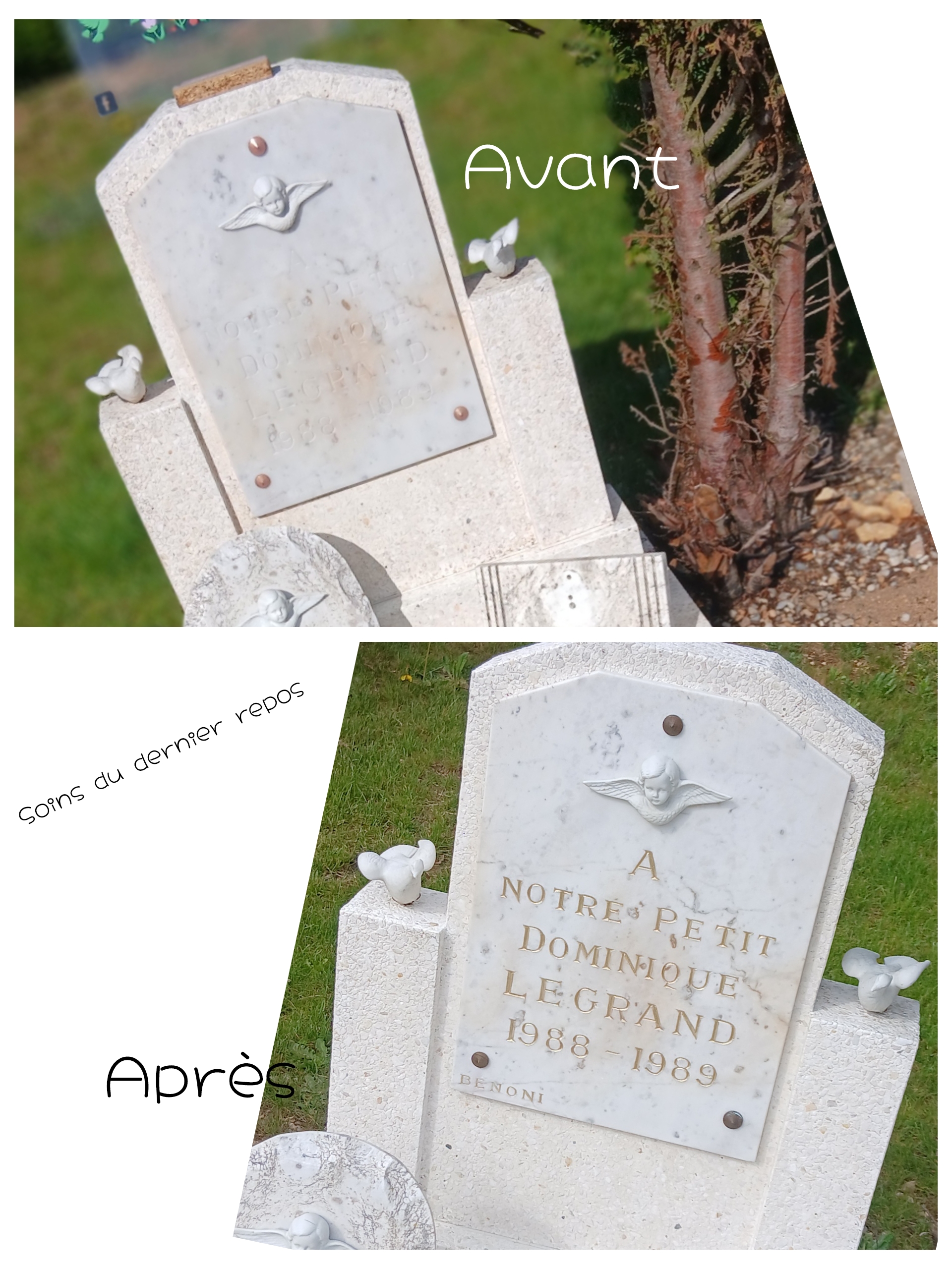 Redonne lisibilités et élégance aux noms et dates grâce à un travail précis et respectueux
